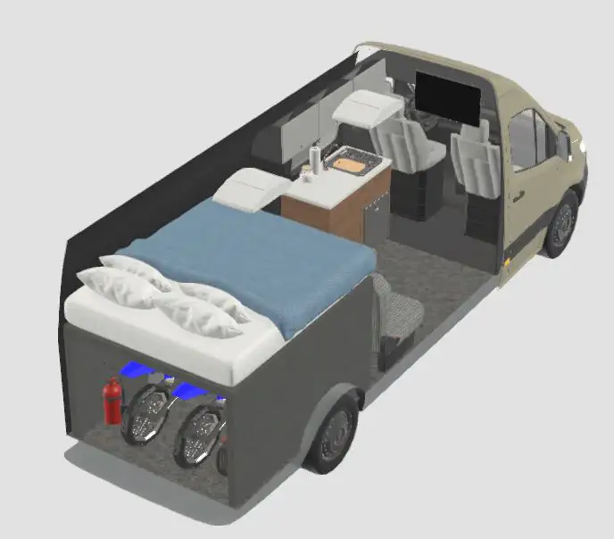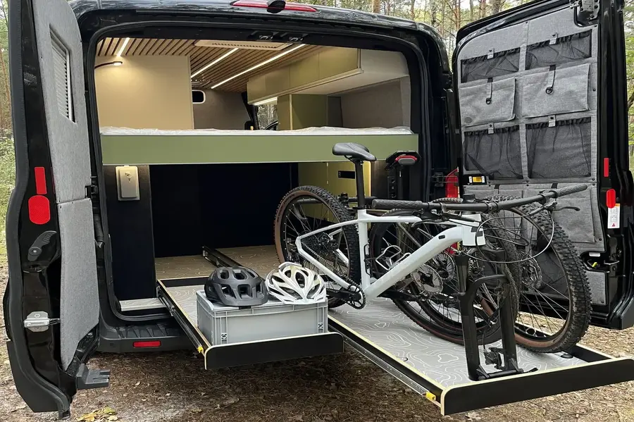 Rock Garden łączy funkcję kampervana z ogromnym bagażnikiem na rowery i sprzęt sportowy, zapewniając jednocześnie komfortowe warunki pracy i odpoczynku.